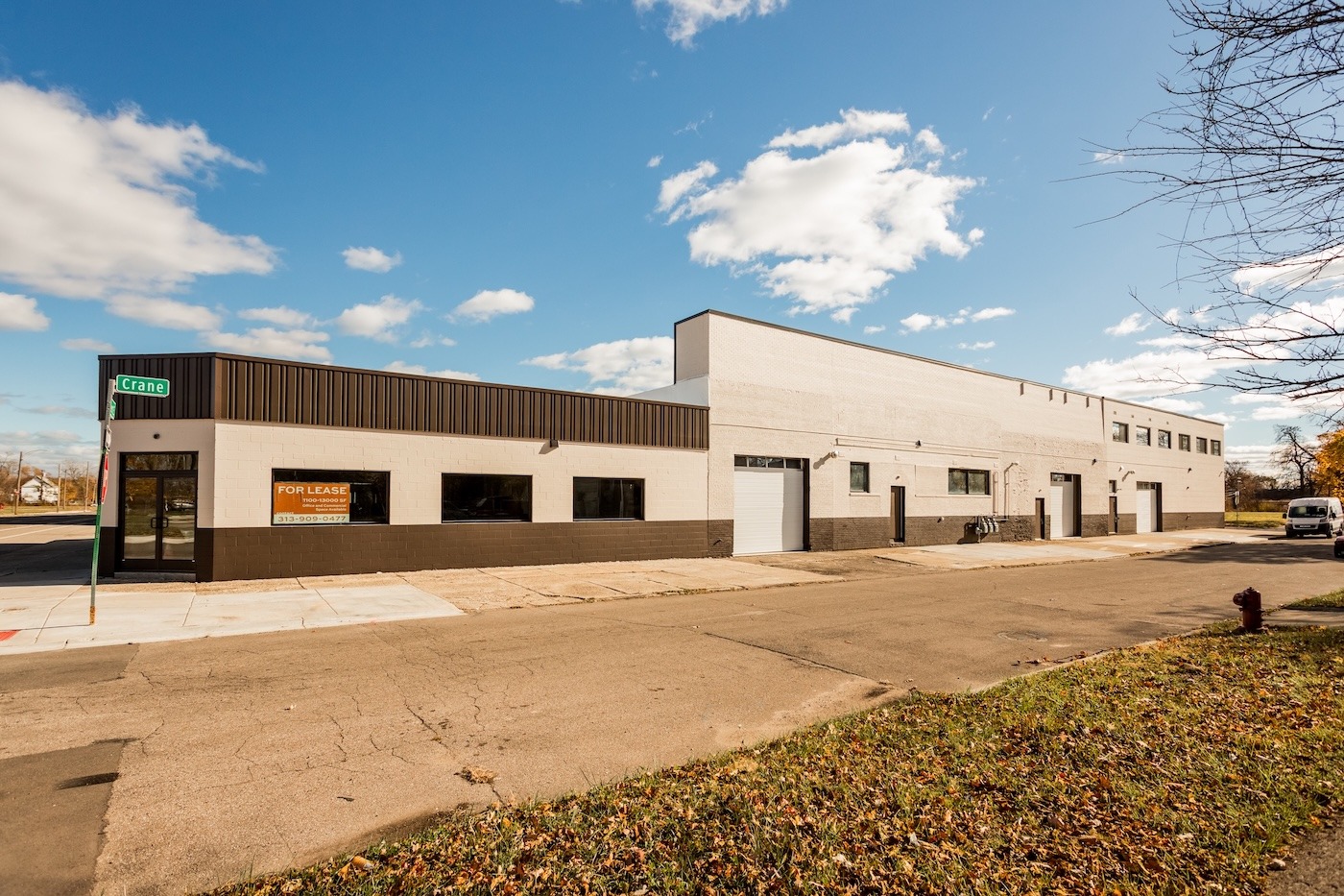 4630 Crane Street offers newly renovated warehouse / maker space for lease in Detroit’s Pingree Park neighborhood, with 2,553 to 9,496 square feet of warehouse / maker space available, plus 1,041 square feet of well-designed second-floor office space featuring a shared conference room. Fully renovated in 2025, the building features a new roof, skylights, doors, windows, overhead doors, plumbing, electrical systems, updated storefronts, and a resurfaced parking lot, providing modern functionality within a creative industrial setting. Tenants will join Virtuoso Design Build and Artisan Contracting, making the property well-suited for makers, fabricators, creative studios, and light industrial users seeking high-quality space in an active, design-oriented environment.